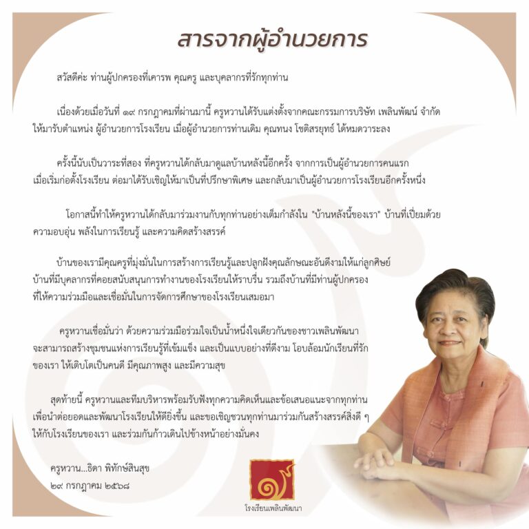 ขอบคุณเรื่องเล่าจากคุณครูวิสนี ทินโนรส (ครูเนส) ฝ่ายมัธยม