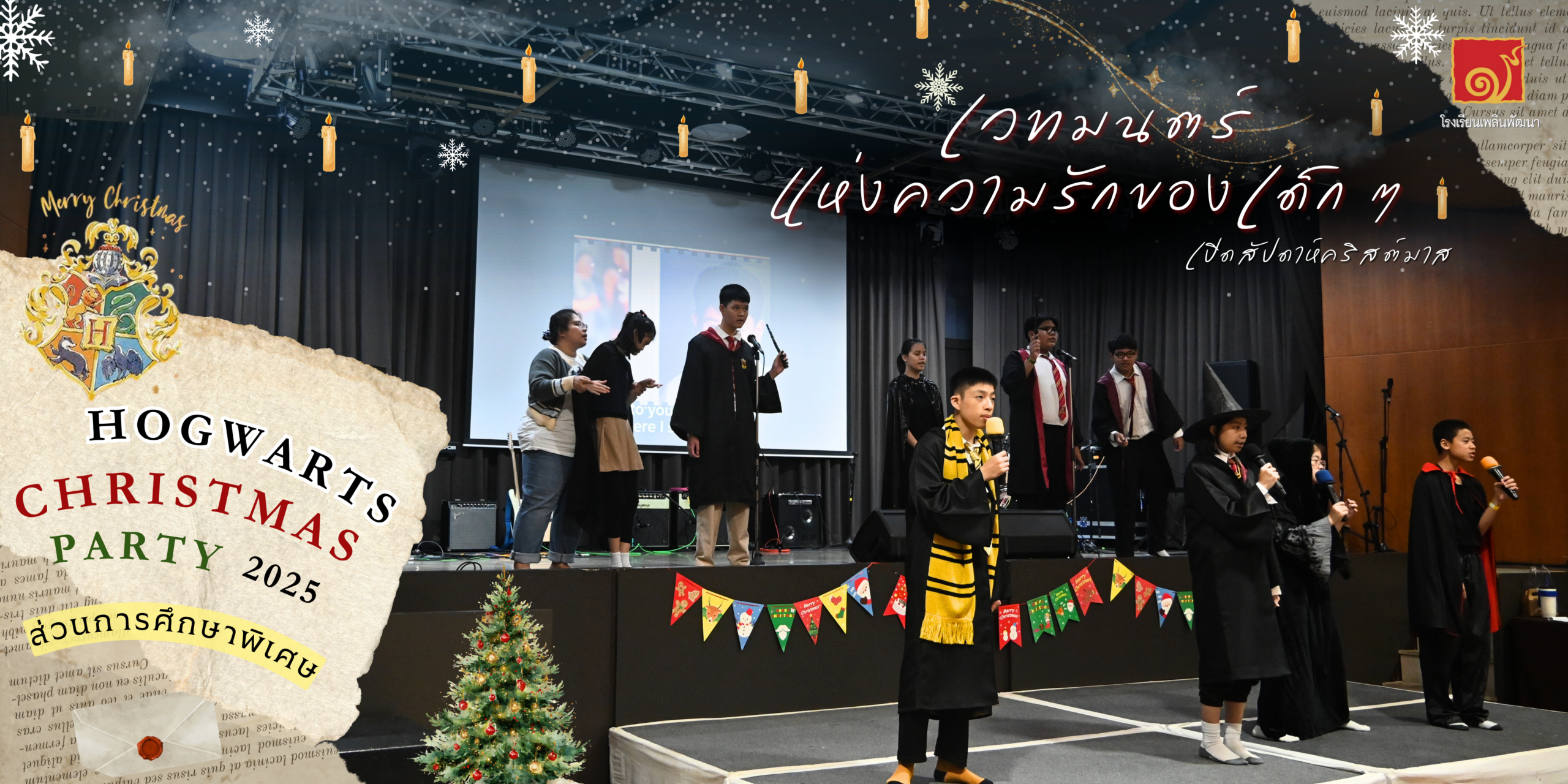 เพลินพัฒนาเริ่มต้นสัปดาห์แห่งความสุขปลายปีด้วยบรรยากาศของเทศกาลคริสต์มาส และภาพบรรยากาศจากส่วนการศึกษาพิเศษคือภาพแรก ที่อบอวลไปด้วยรอยยิ้ม เสียงหัวเราะ และความตั้งใจ ภายใต้ธีม “คริสต์มาส ณ ฮอกวอตส์” เรื่องราวของแฮร์รี่ พอตเตอร์ถูกนำมาเป็นฉากหลังของกิจกรรม เพื่อถ่ายทอดความหมายของความรัก การให้ และการอยู่ร่วมกัน ในบรรยากาศที่อบอุ่น เป็นมิตร และปลอดภัยสำหรับเด็กทุกคน