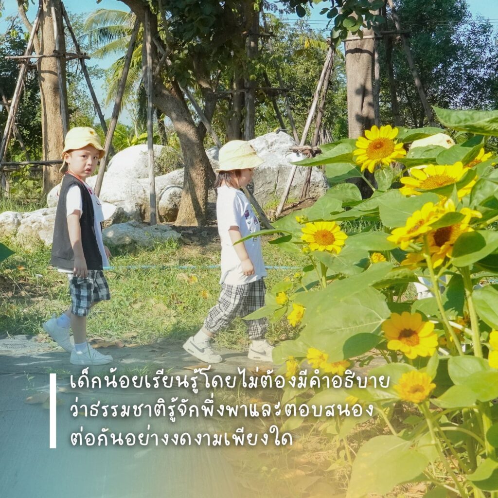 เมื่อก้าวเล็ก ๆ สัมผัสผืนดิน เด็ก ๆ ได้พบกับพลังของธรรมชาติที่มีชีวิต กลิ่นดิน ใบไม้ และสายลมอ่อน ๆ เติมเต็มทุกลมหายใจ พื้นที่กว้างเปิดโอกาสให้จินตนาการและความรู้สึกได้เคลื่อนไหวอย่างอิสระ ธรรมชาติก็ค่อย ๆ ซึมซับเข้าสู่หัวใจดวงน้อย ปลุกความสงบ