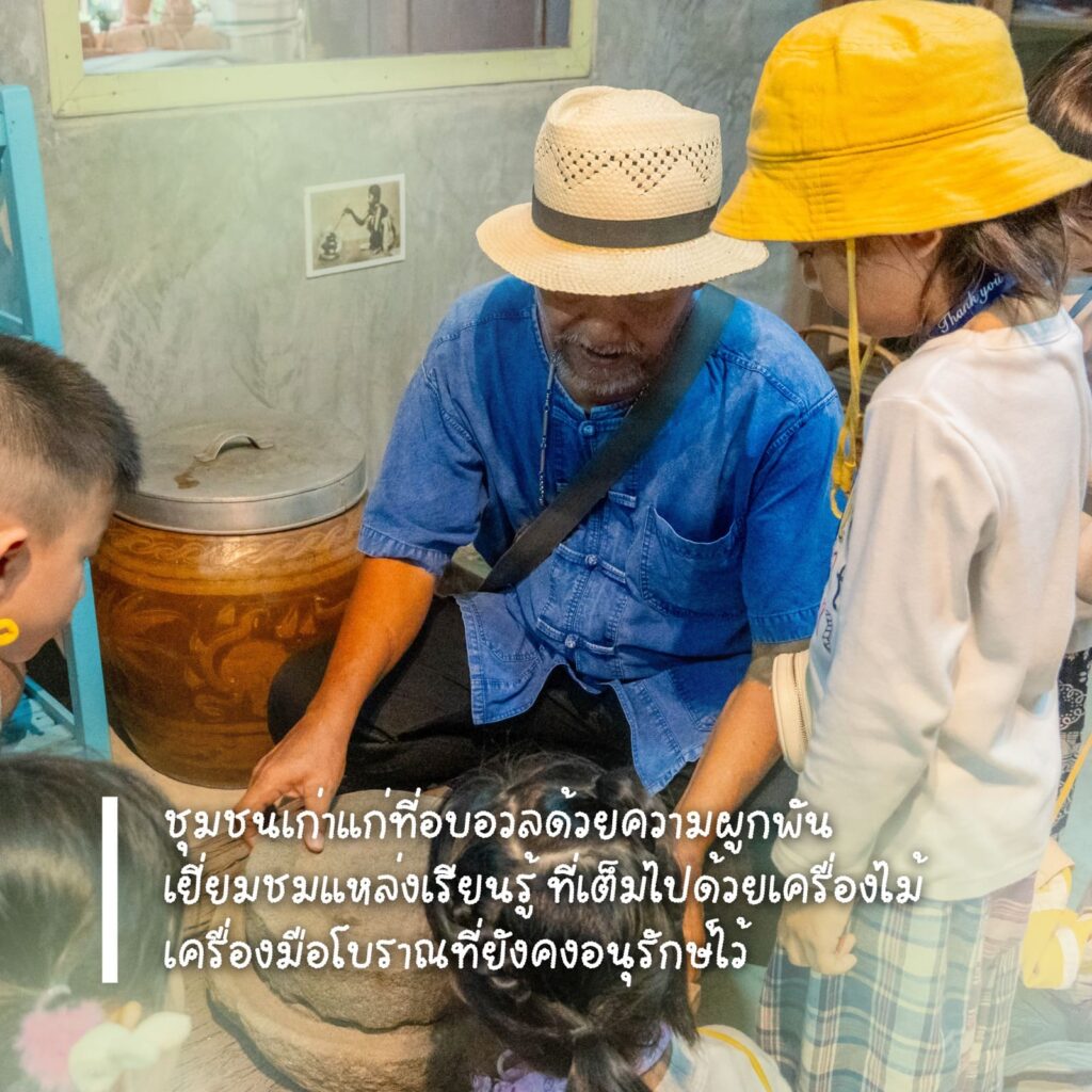 🌟 ตลอดทั้งวัน เด็ก ๆ ได้พบปะคุณลุงคุณป้าใจดีที่พาเดินสำรวจ มองเห็นว่าผู้คนในชุมชนทำสิ่งต่าง ๆ ร่วมกันอย่างไร ได้ชมสถานที่สำคัญที่ยังคงอนุรักษ์ไว้ สัมผัสวิถีชีวิตริมคลองที่ยังคงสัญจรด้วยเรือ และสนุกกับฐานกิจกรรมที่สะท้อนภูมิปัญญาท้องถิ่น ไม่ว่าจะเป็น ฐานทำไข่เค็มใบเตย ฐานขนมไทยมงคล “ผกากรอง” หรือ “ลูกชุบ” ฐานผ้ามัดย้อมจากสีธรรมชาติ และฐานเรียนรู้การนวดแผนไทย