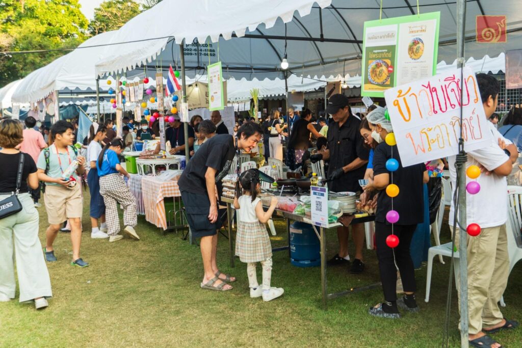 ​🎏 จากซุ้มศิลปวัฒนธรรมที่ค่อย ๆ ถ่ายทอดเรื่องราวทรงคุณค่า ผนังรวมภาพวาดสมเด็จพระพันปีหลวงที่ผู้คนร่วมงานหยุดจ้องมองด้วยสายตาแห่งความชื่นชม ตลาดสื่อความรักที่อบอวลด้วยกลิ่นหอมของอาหารและความประณีตในสินค้าที่ทำจากใจ จนถึงการแสดงของเด็ก ๆ และรอยยิ้มของครอบครัวที่นั่งล้อมวงกันบนสนามหญ้า ทุกส่วนได้ทำหน้าที่ของตนสำเร็จเสร็จสิ้นแล้ว