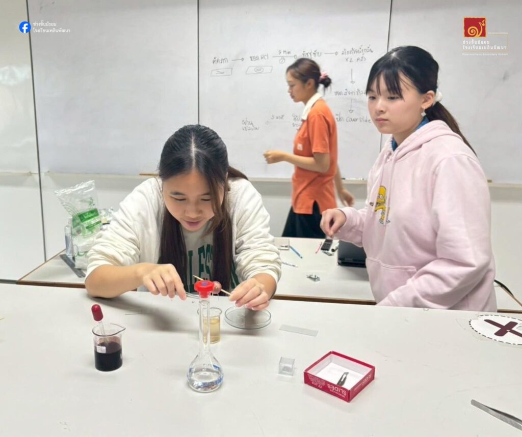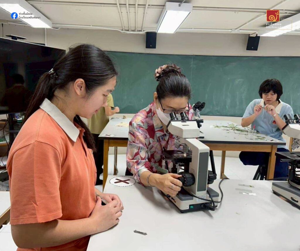 นักเรียนเรียนรู้การเตรียมสไลด์จากปลายรากหอม การย้อมสีด้วยน้ำข้าวเหนียวดำ และใช้กล้องจุลทรรศน์ในการสังเกตระยะต่าง ๆ ของการแบ่งเซลล์ การพบระยะต่างๆของการแบ่งเซลล์เป็นสิ่งที่น่าตื่นเต้น และน่าภาคภูมิใจจนต้องขอเอาสไลด์ที่เตรียมกลับบ้านเป็นที่ระลึก