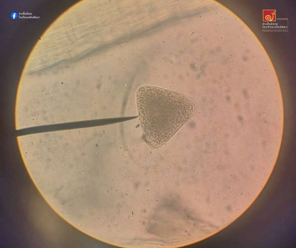 พี่ ๆ ชั้น 11 ใช้กล้องจุลทรรศน์ศึกษา โครงสร้างละอองเรณู ของดอกไม้หลากหลายชนิด เช่น ชบา อัญชัน กล้วยไม้ ฯลฯ นักเรียนได้เปรียบเทียบรูปร่างของละอองเรณู ศึกษาการงอกของหลอดละอองเรณู และเชื่อมโยงไปสู่ความเข้าใจเรื่องการสืบพันธุ์ของพืชดอก