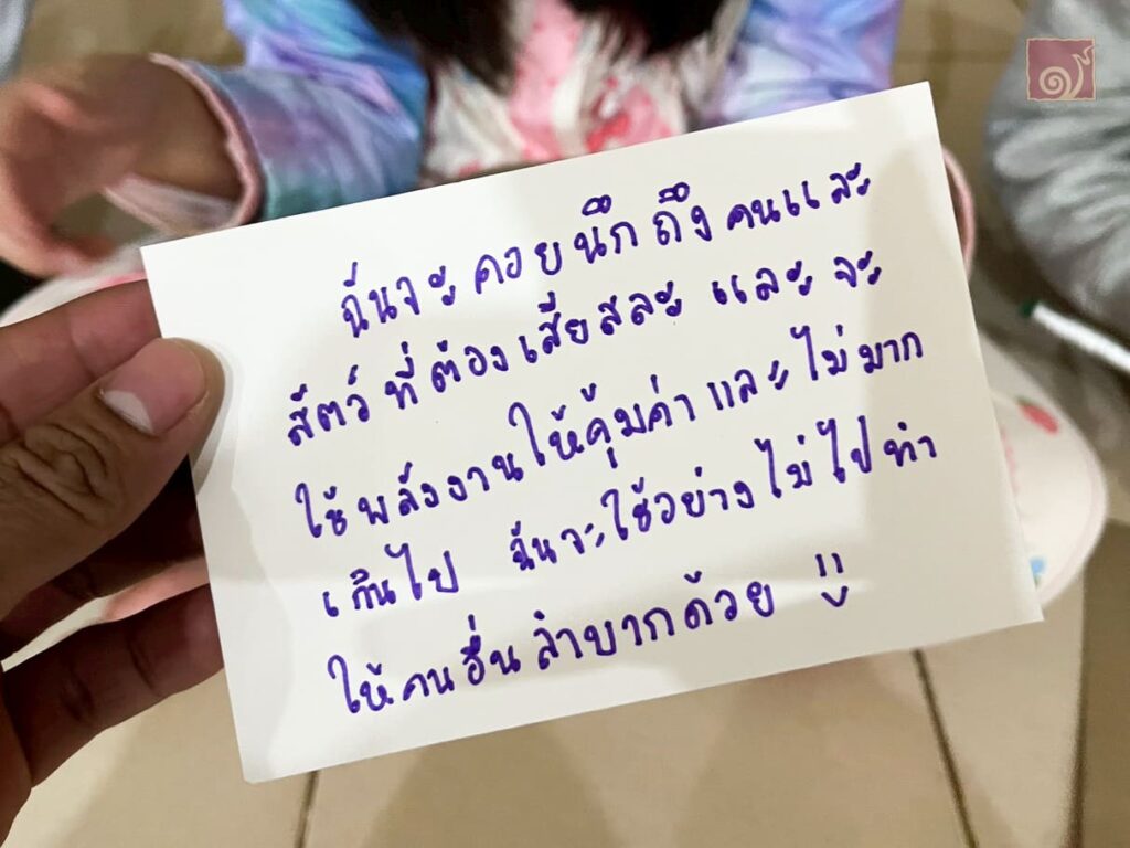 ข้อความแต่ละใบเต็มไปด้วยข้อความที่งดงาม ทั้งการบรรยายและบทกวีที่เด็ก ๆ รังสรรค์ขึ้นด้วยหัวใจ