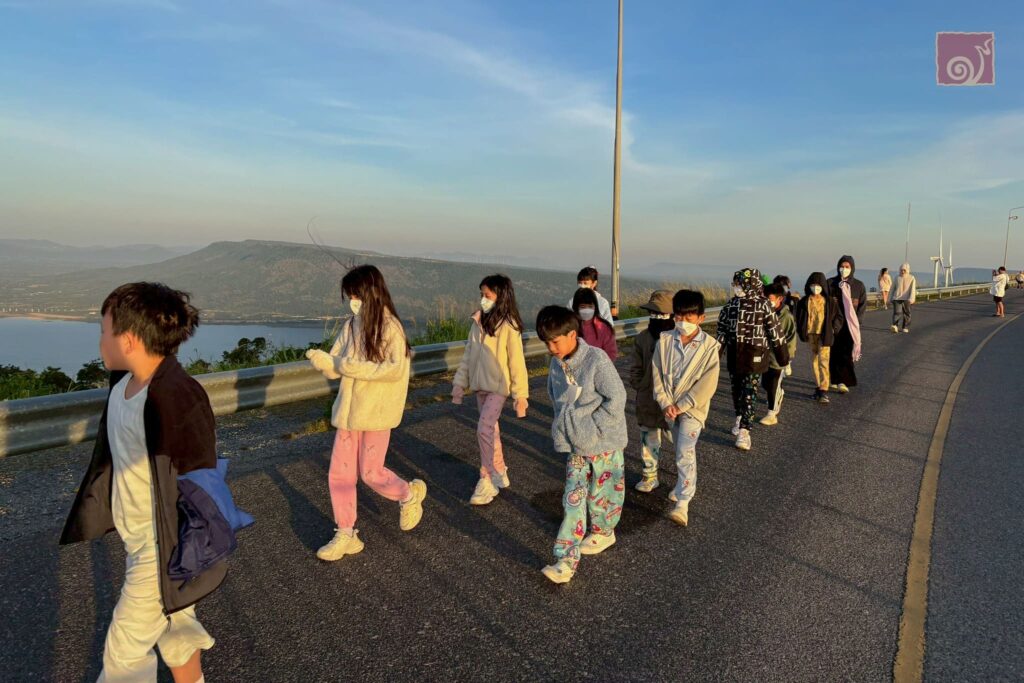 ค่ำวันนั้น คุณครูชวนเด็ก ๆ เข้าสู่กิจกรรมสุนทรียสนทนา โดยหลับตาฟังเสียงธรรมชาติ จากนั้นลืมตาแต่ภาพที่เห็นตรงหน้าคือภาพป่าที่ถูกทำลาย หรือสัตว์ป่าจำนวนมากต้องล้มตายเพราะไม่มีที่อยู่